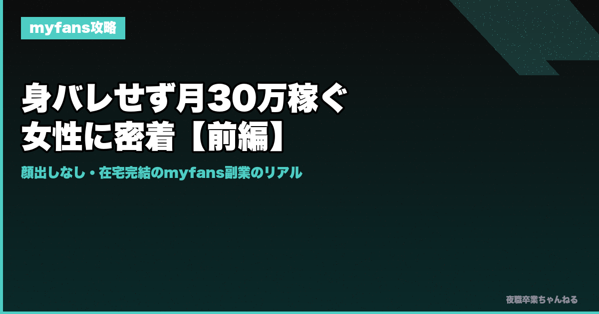 前編では、会社員をしながら身バレせずにmyfansで月30万稼ぐ女性に密着した。後編では、その運用術をさらに深掘りする。プラン設計、X集客、継続率アップ、法務・税金まで、実践的なノウハウをまとめた。