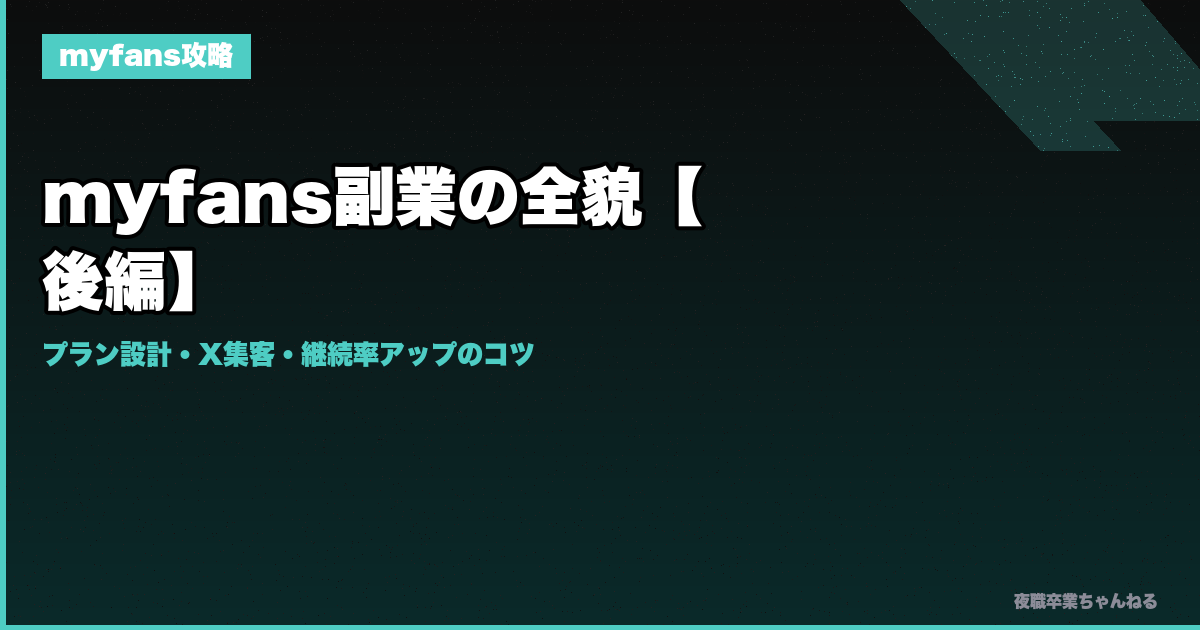 もっと詳しいプラン設計は → myfansの稼ぎ方まとめ2026 を参照してほしい。