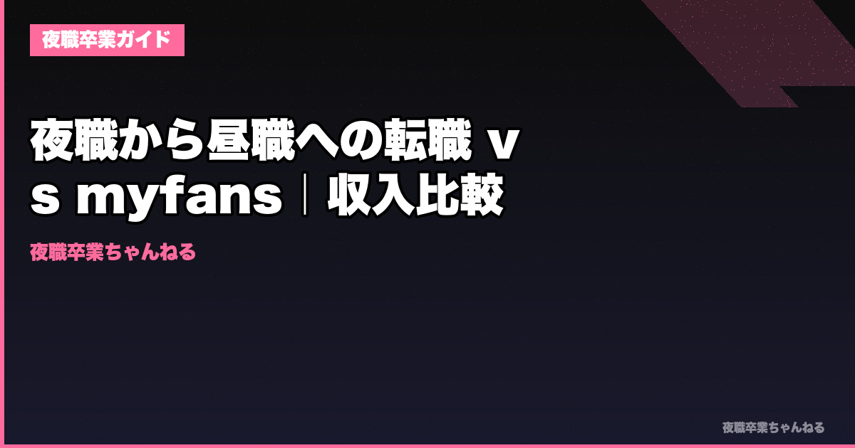 昼職転職だけだと月収が落ちる。月35万から19万に落ちるケースも普通にある。夜職で消耗してる子ほど、朝型フルタイムへの移行でつまずきやすい。問題は根性不足ではなく、収入の受け皿が先にないこと。myfansやfantiaは、夜職スキルを在宅収入に変える第3の選択肢になり得る。家賃8万、奨学金2万、美容代3万を抱えたまま収入だけ半分になるのは、精神論では回らない。