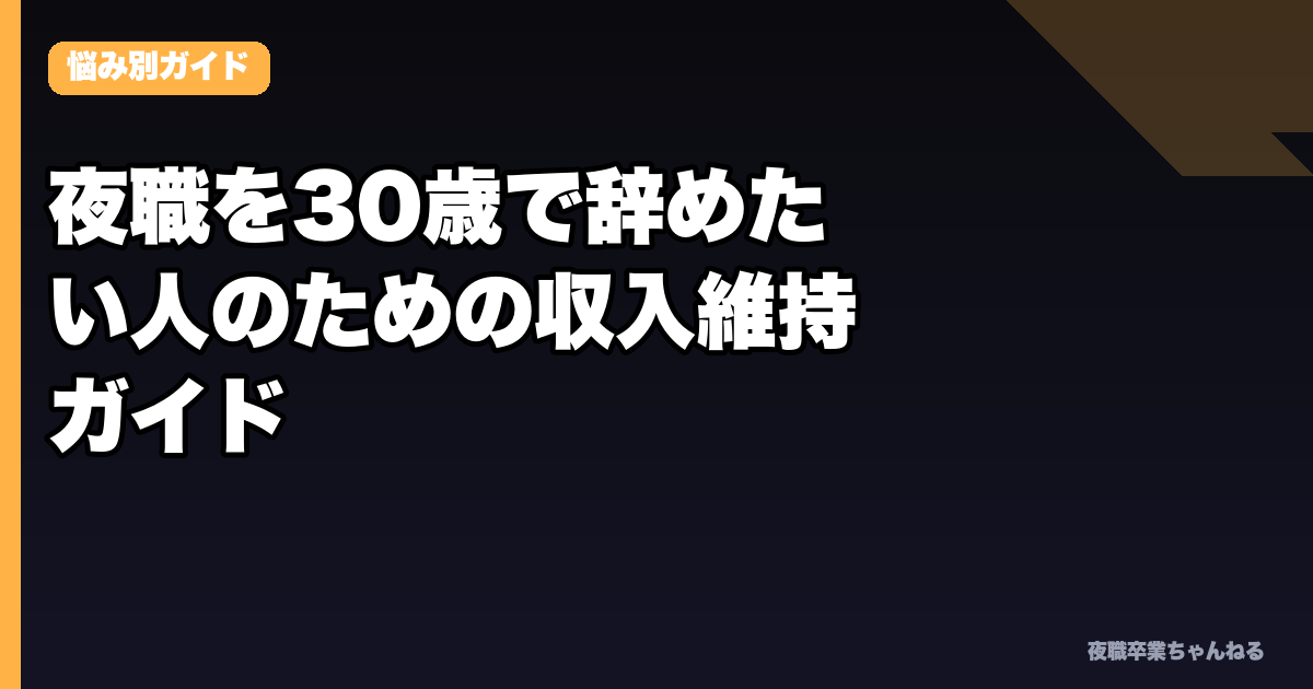 # 夜職を30歳で辞めたい人のための収入維持ガイド