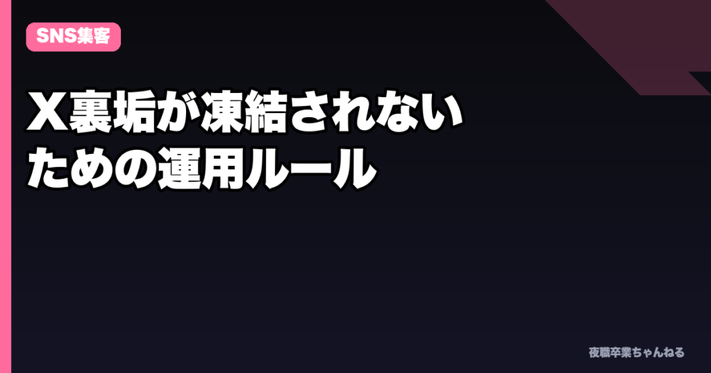 # X裏垢が凍結されないための運用ルール 裏垢 凍結 対策で迷ってる人へ。この記事を読めば、結論と手順が3分でわかる。「私でもできる?」「失敗したら怖い…」まで含めて、先回りして整理するよ。 --- 結論:裏垢 凍結 対策で一番効くのはこれ 結論:凍結... -
