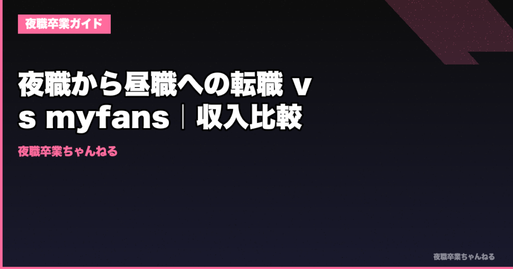 夜職 昼職 転職 比較について、夜職卒業ちゃんねる運営の立場からまとめる。検索で来る子が多いから、全体像を押さえておいてほしい。この記事を読めば、何から手をつければいいかがわかるはず。夜職を辞めたい、でも収入は下げたくない——その気持ちに応え... -