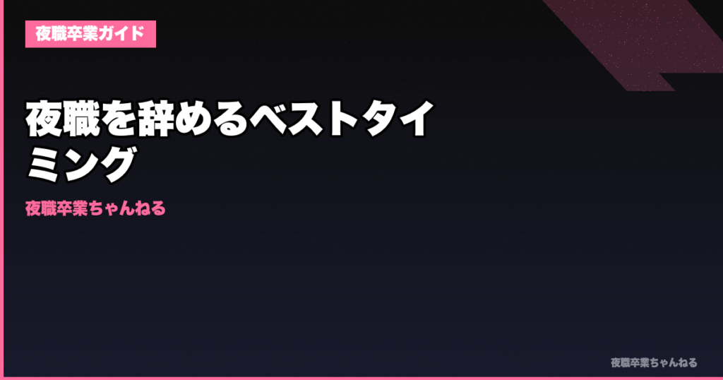 この記事を読めば、夜職を辞めるベストなタイミングと、辞める前にやっておくべき準備がわかる。 「いつ辞めるのがいいんだろう」「貯金がいくらあれば安心?」と悩んでいる人は多い。辞めたい気持ちはあるけど、収入が途切れるのが怖くて踏み出せない。 ... -