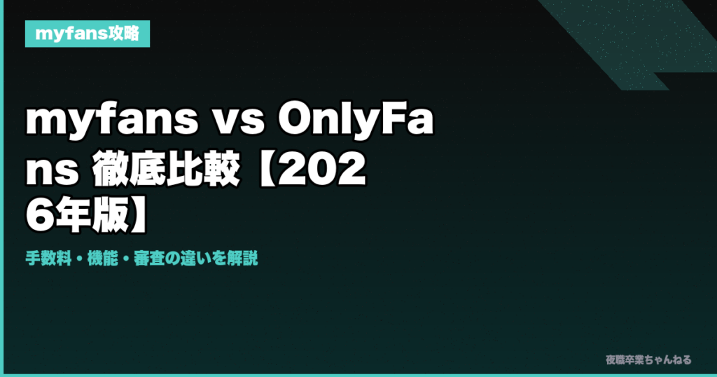# myfans vs OnlyFans 徹底比較【2026年版】 この記事を読めばわかること myfansとOnlyFansの違い(手数料・機能・審査)実際の手取りシミュレーションあなたに合ったプラットフォームの選び方 「myfansとOnlyFans、どっちで始めればいいの?」 ファンサブ...